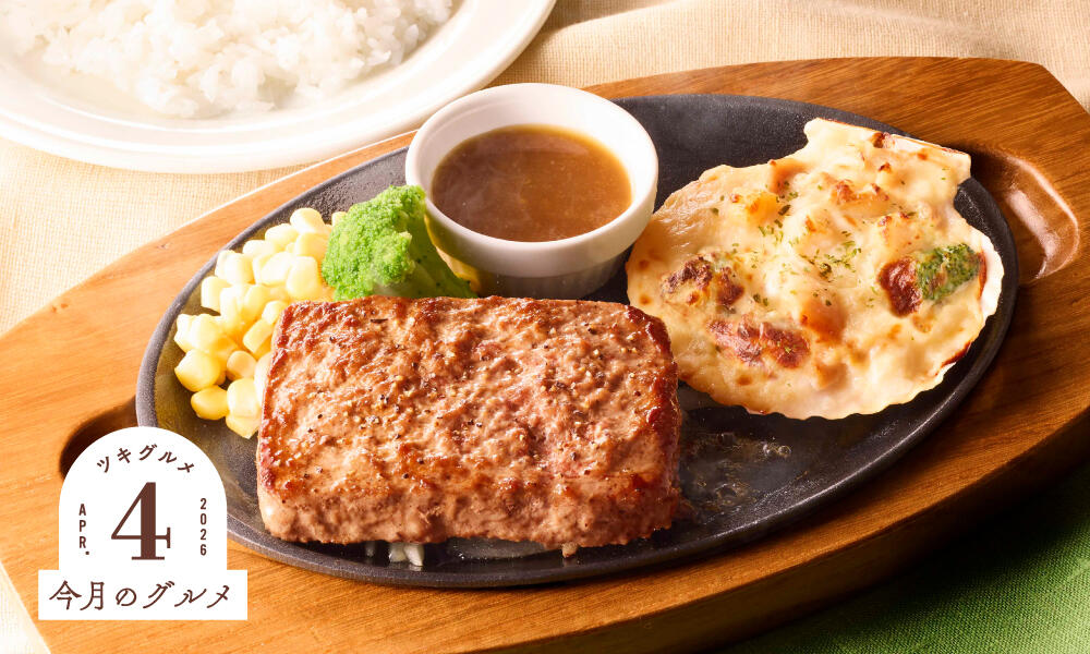ビーフハンバーグステーキ&北海道産帆立のグラタン -