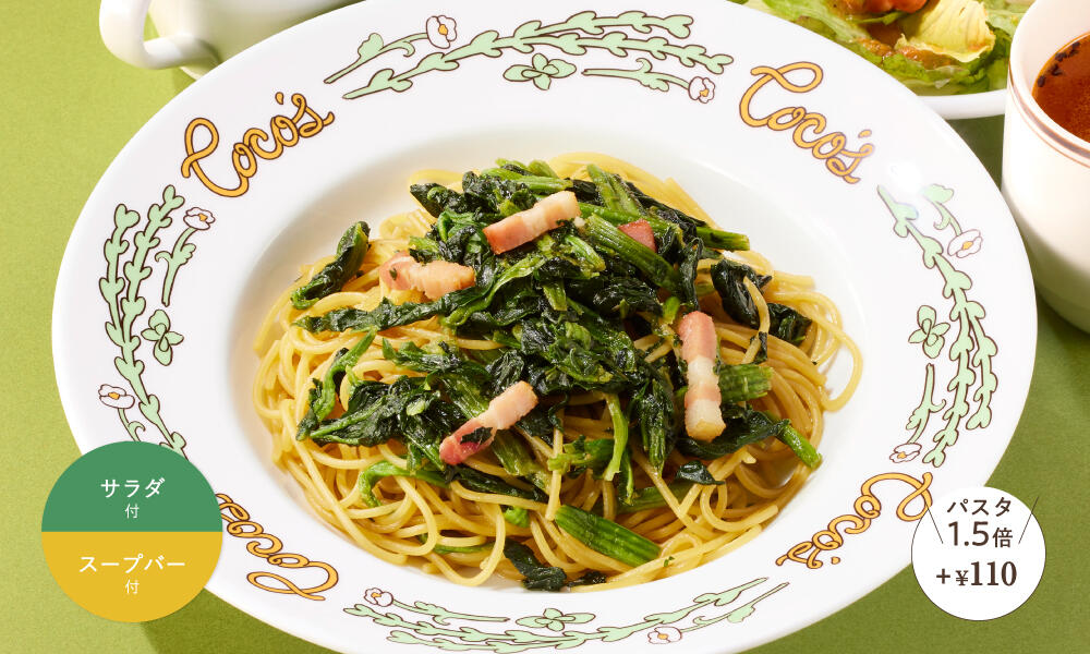 Lunch Menuほうれん草とベーコンのバター醤油パスタランチ