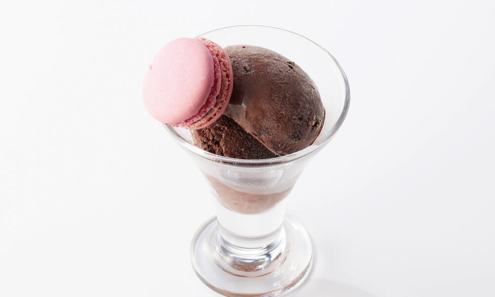 濃厚チョコレートアイスにラズベリーマカロンをトッピング!