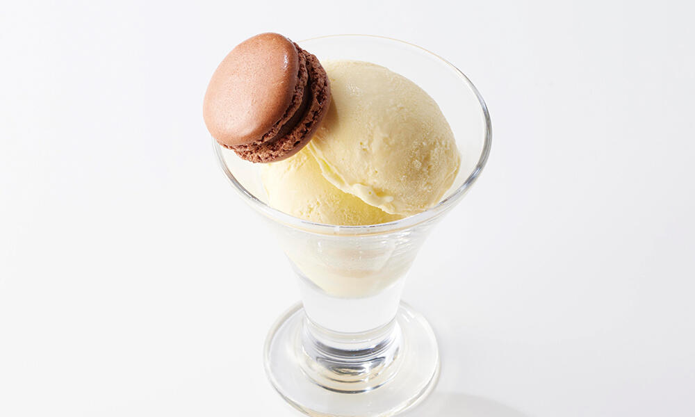 濃厚バニラアイスにチョコマカロンをトッピング!